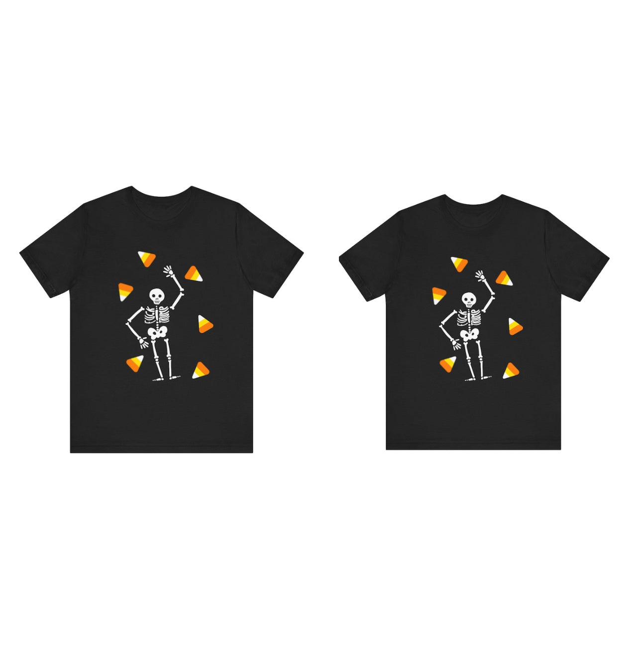Featuring an adorable skeleton surrounded by colorful candy corn, this shirt brings a festive vibe to your wardrobe. It’s ideal for Halloween celebrations, allowing you to showcase your fun side while staying comfy! 🎉🕷️
