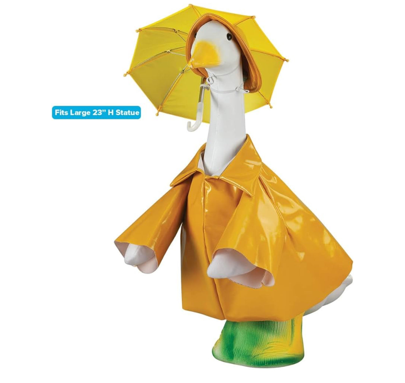 Dress up your favorite 23" H statue with this adorable Raincoat Goose Outfit! Perfectly crafted from 100% polyurethane, it’s designed to fit both babies and larger statues alike. 🎉✨